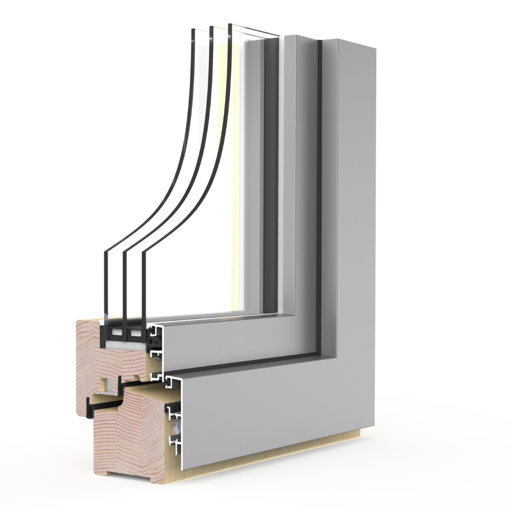 Die natürliche Holzoberfläche im Innenbereich verleiht Räumen eine warme und gemütliche Atmosphäre, die sich harmonisch in verschiedene Einrichtungsstile einfügt. Außen sorgt die robuste Aluminiumschale für eine moderne Optik und bietet zugleich Schutz vor Witterungseinflüssen.