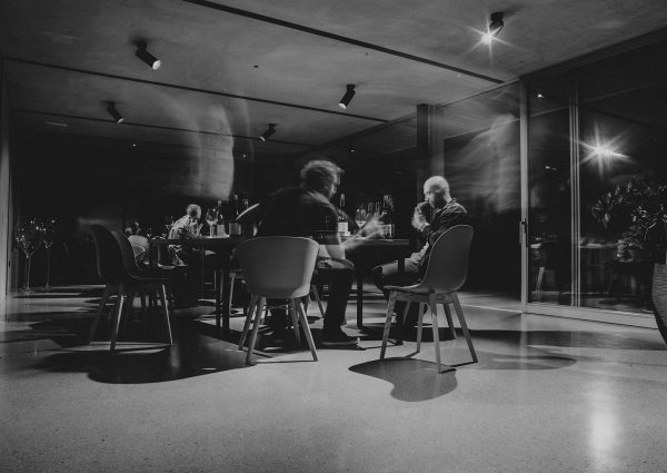 Die Aufgabe der Architekten ist es, einen getrennten Raum für die Degustation zu entwerfen, wo die jungen Winzer aus Vipava den Gästen eine authentische Präsentation bieten können. Neben Wein und Kulinarik eröffnet sich im neu gestalteten Raum auch ein schöner Blick ins Tal, der das Besuchserlebnis vollumfänglich macht. Das Objekt hat eine rechteckige Form mit klaren Linien. Durch die große Glaswand im Eck sowie durch die überdachte Terrasse gelangt man schnell vom inneren ins äußere Ambiente. Die gläserne Umrandung umgibt die Betonkonstruktion, Wärme und ein Gefühl des Zuhause-Seins vermittelt die Holzbeschichtung im Inneren des Objekts. (Foto: Nejc Bole)