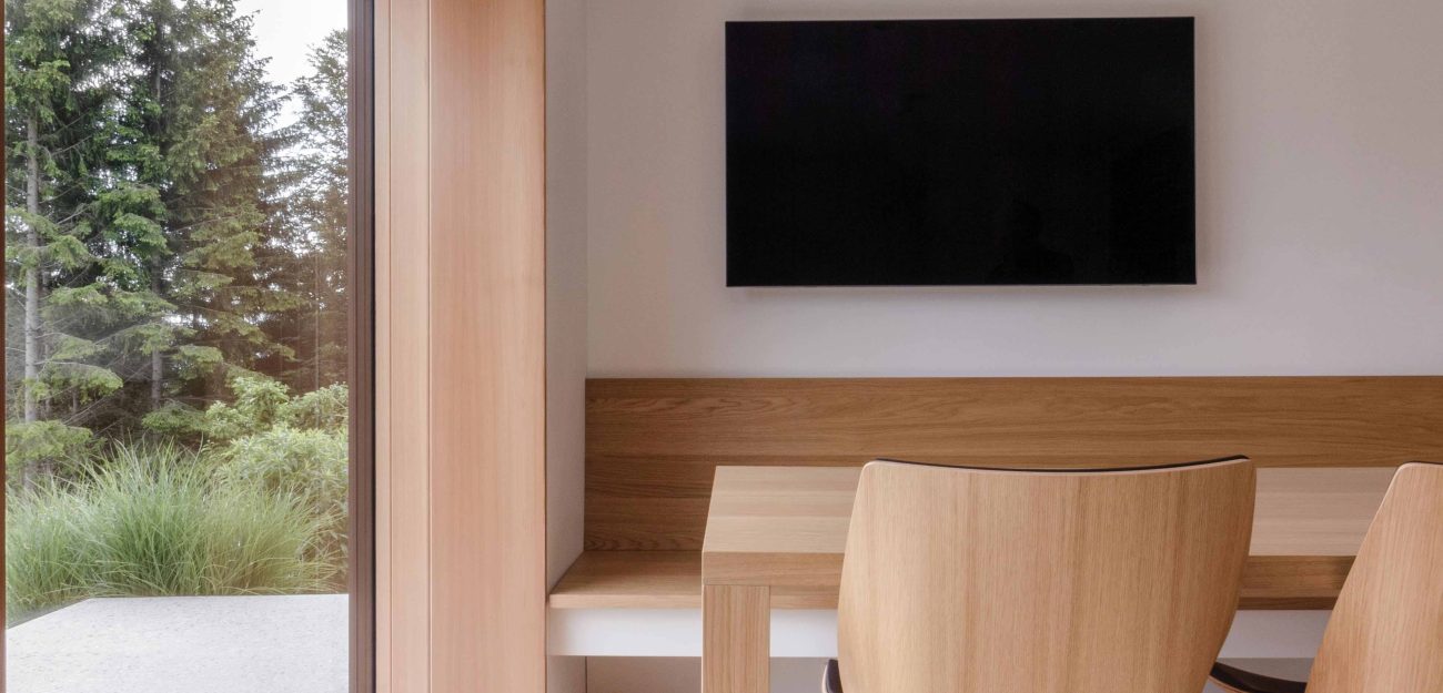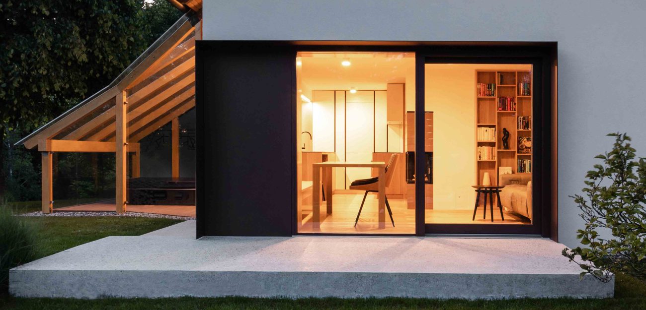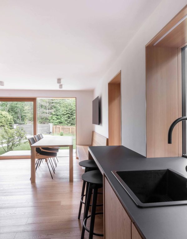 Das Haus, das in die Natur der Wälder der Pohorje gesetzt wurde, wurde in den 90er-Jahren des vergangenen Jahrhunderts erbaut. Das Objekt hatte einen kompakten Entwurf des Grundrisses, Räume mit kleinen Fensteröffnungen und langlebiger Ausstattung. Der Investor wollte das Haus modernisieren, mit der Umwelt verbinden und es der modernen Art des Wohnens anpassen. Die Erneuerung des Hauses strebt nach einer Verbindung der inneren Wohnräume mit der grünen Umgebung, in welche das Haus hineingesetzt wurde. Die kleine Quadratur mit dem durchdachten Entwurf ermöglicht ein luxuriöses und komfortables Leben im Haus, das genau alles bietet, was man braucht. (Foto: Matic Škarabot)